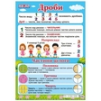 Навчальний плакат, що демонструє поняття дробів у наочній формі. Містить приклади простих і десяткових дробів, їх порівняння, перетворення, додавання і віднімання. Ідеально підходить для початкової та середньої школи. Яскраві кольори й ілюстрації допомагають краще засвоїти матеріал. Формат А2, ламінований, міцний та зручний у використанні.